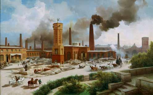 Den Blick stadtauswärts gerichtet, erblicken wir das Feuerland der Industrie, welche die unzähligen Obelisken erbaut hat, die die Luft mit Kohlenqualm schwängern. Hier riecht man überall Ruß und Eisen und hört das Pochen der Maschinen und den Schlag der Schmiedehämmer.