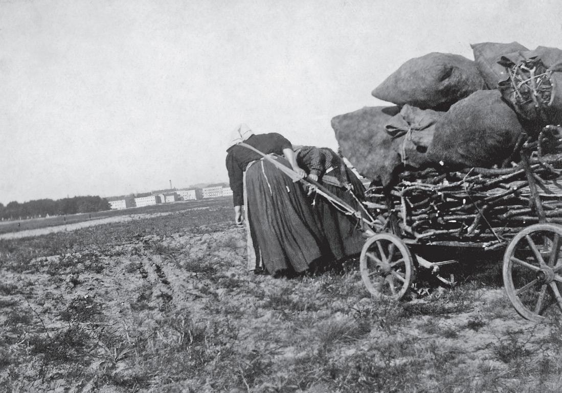 Reisigsammlerinnen auf dem Feld mit Blick nach Charlottenburg. Fotografie von Heinrich Zille, 1898