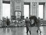 2 Am Sowjetischen Ehrenmal im Tiergarten legen nach dem Tod Stalins kommunistische Vereinigungen und West-Berliner Bürger Blumen ab.