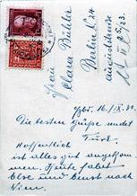 Vorder- und Rückseite einer Ansichtskarte mit Habermann und Freunden vom 16. 9. 1930 aus Franzensbad an Clara Bühler unten: Plakatausschnitte