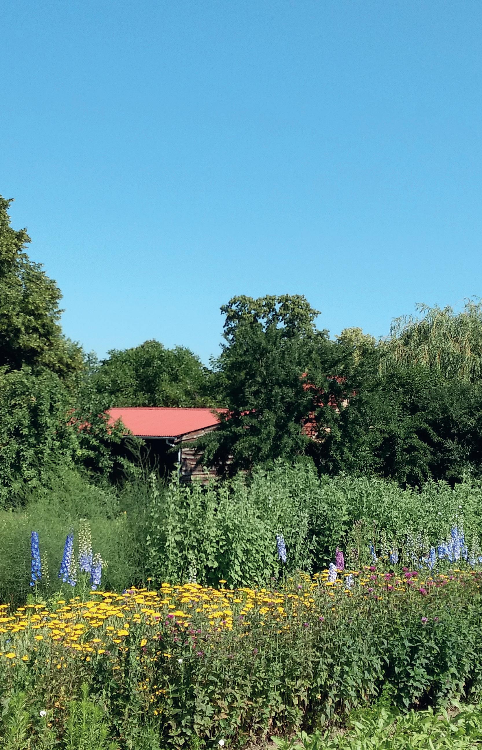 wird, gern auch in fantasievollen Kombinationen wie Erdbeer-Schokolade. Im Hofladen finden sich noch weitere ihrer Kreationen, darunter Gelees, Sirups, Chutneys, Essig, Öle und Säfte, die alle in Handarbeit und nach eigenen Rezep ten hergestellt werden. Das Angebot wird ergänzt durch Produkte von befreun deten Produzenten aus Brandenburg und anderen Regionen.
