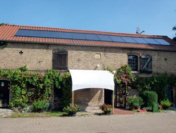 Der Ökohof ist eigentlich ein ganzes Dorf. Neben den Ställen und Wirt schaftsgebäuden gehören dazu eine Werkstatt für Menschen mit Behinderung, zwei Wohnheime mit insgesamt 24 Plätzen für die Beschäftigten und der Dorf krug, der unter der Woche als Kantine fungiert und abends und am Wochenende als Gaststätte allen Besuchern offensteht.