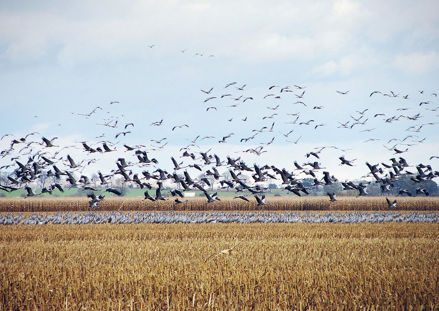 Im Oktober und November lässt sich der Besuch auf Rixmanns Hof gut mit einer Beobachtung der Herbstrast der Kraniche verbinden. Die Gegend um Linum zählt wegen der vielen feuchten Wiesen, auf denen die Zugvögel gern nächtigen, und wegen der Maisfelder, auf denen sie gutes Futter finden, zu den beliebten Rastplätzen auf dem Vogelzug nach Süden. An manchen Tagen wer den hier im Rhinluch über 70.000 Kraniche gezählt. Es gibt einige ausgewiesene Kranichbeobachtungsstellen, aber am sinnvollsten ist es, eine der geführten Touren zu buchen, die vorzugsweise frühmorgens oder am späten Nachmittag stattfinden. Informationen zu Orten und Terminen findet man im Internet un ter www.kraniche-linum.de. Dort gibt es auch Hinweise zu weiteren Einkaufsund Einkehrmöglichkeiten im Storchendorf.