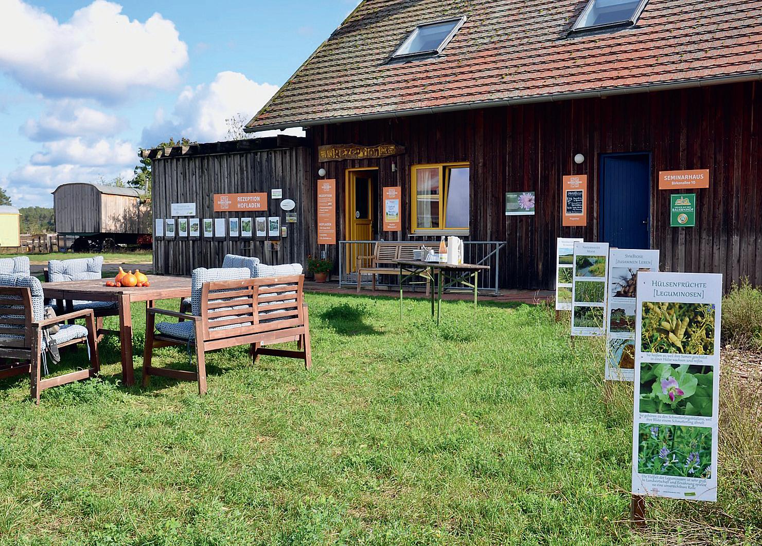 In einem alten Gutsgebäude betreibt Jacqueline Lenz ein kleines Café mit Imbissangebot und Hofladen. Auf der Terrasse kann man im Sommer bei Kaffee und frischgebacke nem Kuchen den Ausblick auf den Gutspark genießen. Der Hofladen bietet ökologisch erzeugte Produkte aus der Region wie Fruchtaufstriche, Honig, Säfte, Sanddornprodukte, Wild wurst und -sülze, verschiedene Teesorten, Naturkosmetik und Liköre, aber auch Gebrauchskeramik sowie Produkte aus Schafwolle. Ganz in der Nähe liegt das spätbarocke Schloss Wolfshagen mit Museum. Pankeweg 4e, 16928 Groß Pankow 033983-700 53 Montag bis Donnerstag 8–16.30 Uhr, Freitag 8–13.30 Uhr