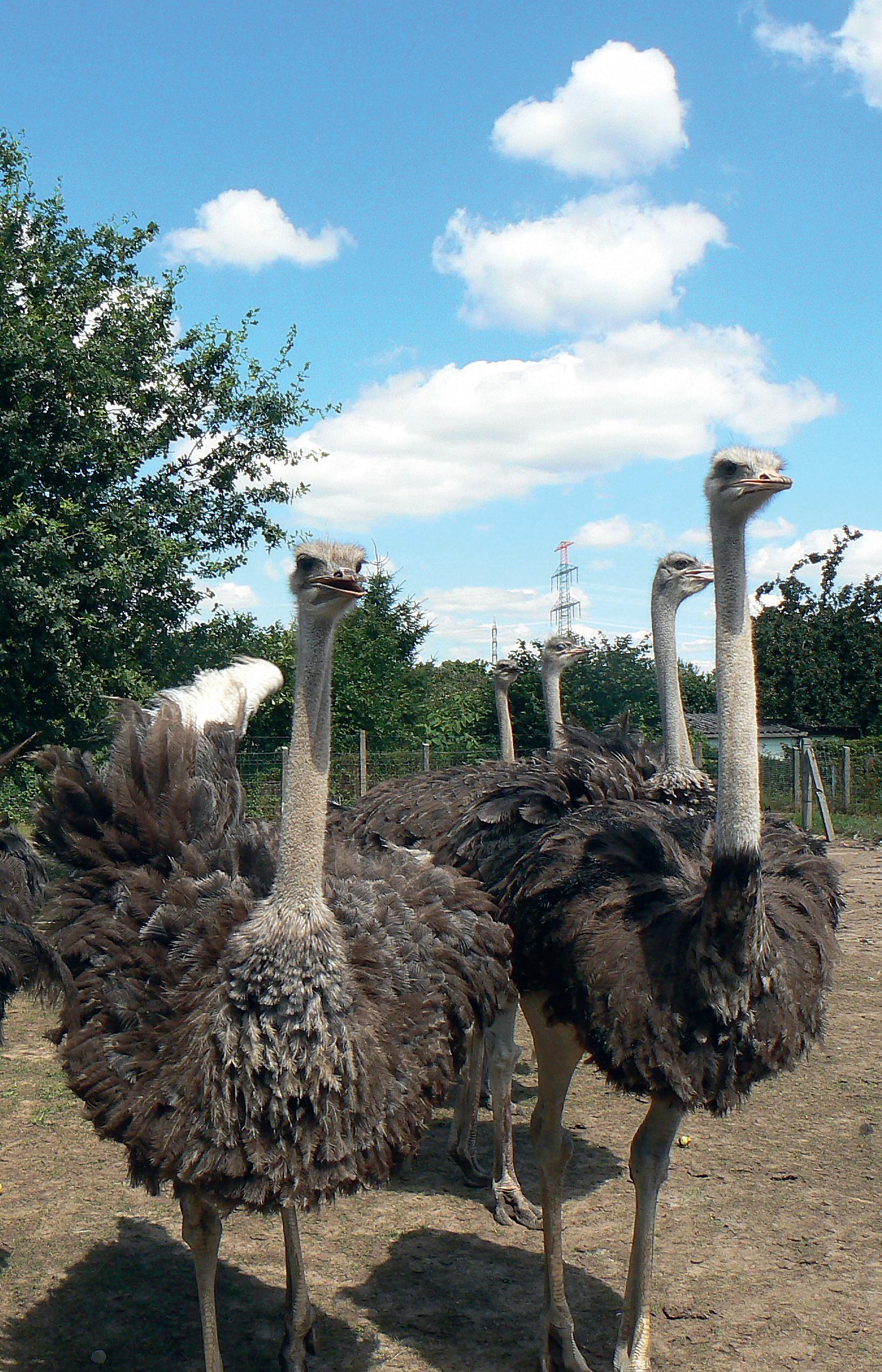 Am Rand von Perleberg betreibt Dietmar Joesten seit 2004 seine Straußenfarm, auf der inzwischen mehr als 100 dieser langbeinigen Vögel leben. Im Hofladen verkauft er Straußen eier und Straußenfleisch (als Filet, Steak oder Wurst), aber auch kunsthandwerkliche Straußenprodukte. Nach Verein barung gibt es zudem Hofführungen mit Verkostung der Straußenwurst. Lübzower Weg 1, 19348 Perleberg