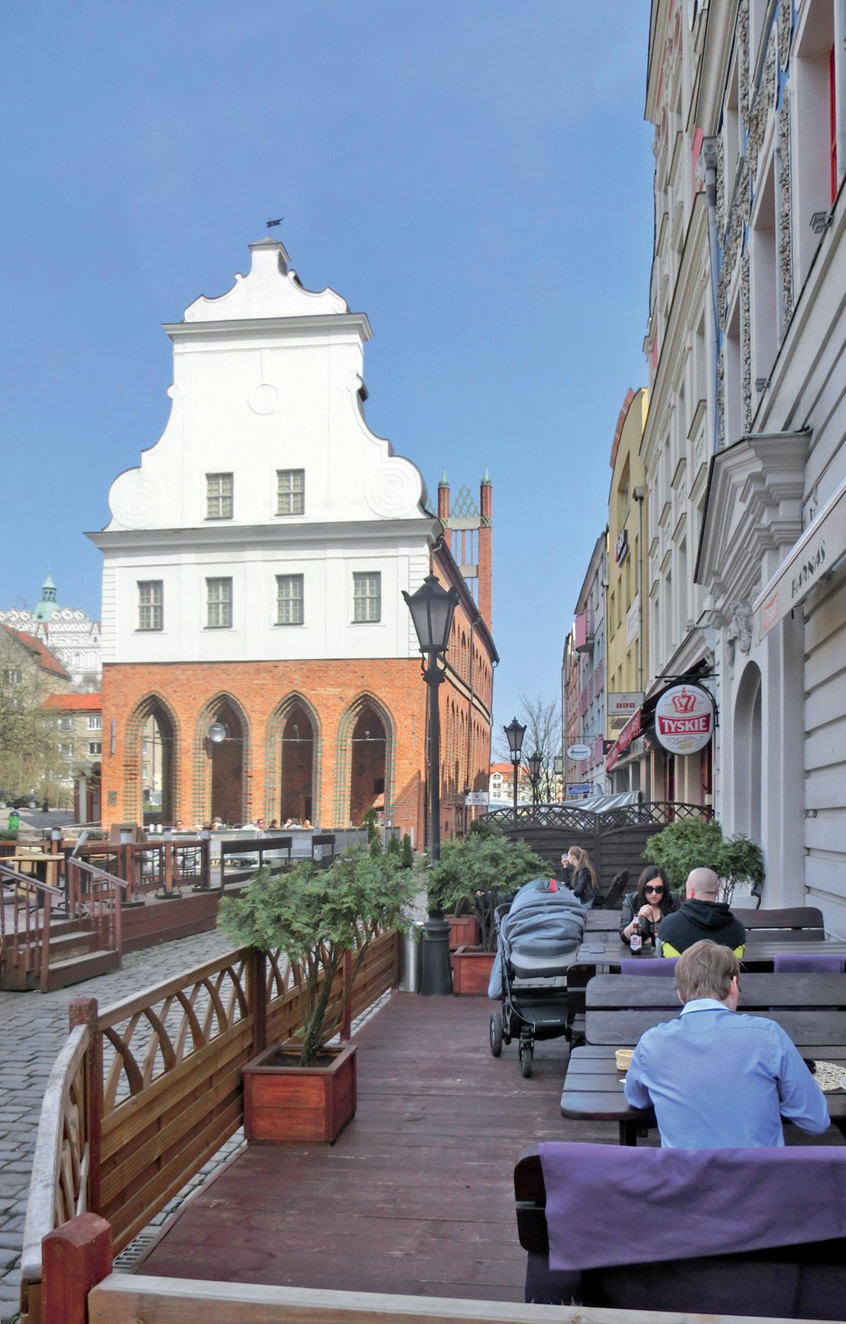 Unsere Wanderung beginnt an der St. Jakobus-Kathedrale (Archikatedra Świętego Jakuba, Księdza Kardynala Stefana Wyszyńskiego 19), deren Anfänge bis in das 12. Jh. zurückreichen, als deutsche Siedler eine erste hölzerne Kirche errichteten. Die mächtige gotische Hallenkirche, aus Backstein errichtet, ist ein Werk aus der Zeit des 14. und 15. Jhs. An ihrem Bau war der berühmte Baumeister Hinrich Brunsberg (um 1350–1428/35) beteiligt, zu dessen Werken auch die Peter-und-Paul-Kirche in Szczecin gehört und dem wir auf unseren Touren noch häufiger begegnen werden. Im Zweiten Weltkrieg fast vollständig zerstört, wurde das Gotteshaus ab den 1970er-Jahren wieder aufgebaut.