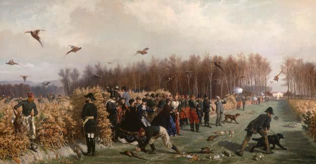 Herrschaftliche Jagden, wie diese des russischen Zaren Paul I. (1754–1801) und seiner Frau Maria Fjodorowna bei Stuttgart, geben Einblicke in die Kulturgeschichte. Gemälde aus dem 20. Jahrhundert