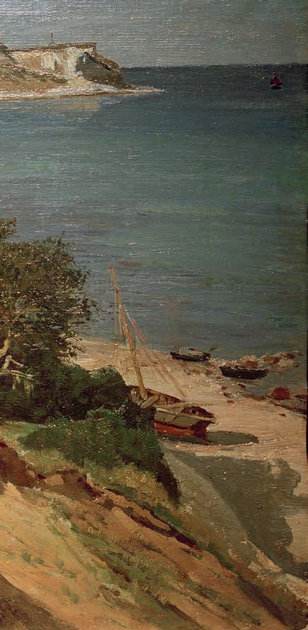 Schiffen und Booten wurde schon immer eine besondere Symbolik zugeschrieben. Bereits in diesem frühen Werk, das einen fischer vor seinem Boot zeigt, spielt die Bildsprache eine wichtige Rolle. Die unendliche Weite des Meeres, der entfernte horizont und das sanft schaukelnde Boot auf dem Wasser verkörpern tiefgründige Symbole für den Aufbruch und die Sehnsucht nach dem unbekannten. Was mag dem rückwärtsgewandten fischer durch den Kopf gehen, der in Richtung des grenzenlosen Ozeans blickt?