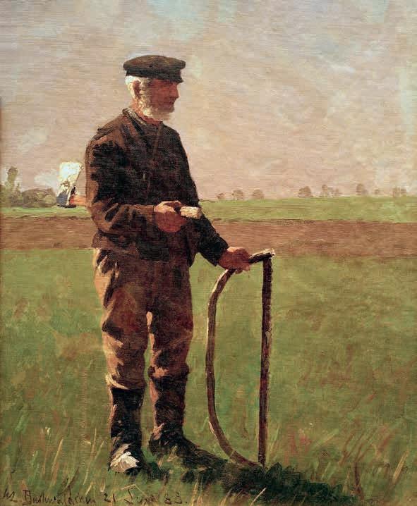 Was geht dem Mann durch den Kopf? Plastisch und wirklichkeitsgetreu malte Leistikow einen Bauern auf dem feld mit seinen Arbeitsutensilien. Die ländliche Alltagsszene wirkt wohlkomponiert und ist wahrscheinlich eine der wenigen ganzfigurendarstellungen, die Leistikow geschaffen hat. Studium und Aus-