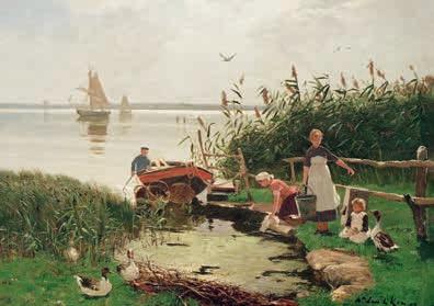 kompositionen arrangiert und durch Staffagefiguren menschlich belebt. Das Ergebnis waren genrehafte Szenen wie »Wäscherinnen am Seeufer« oder »Gänsemarkt am Ziehbrunnen«. Darstellungen, die dem Naturalismus nahe stehen, zu dessen Wegbereitern Leistikow durch den Einfluss skandinavischer Literatur und dem Friedrichhagener Dichterkreis um Gerhard Hauptmann gehörte. Bald wurde der Radius um Nord- und Ostsee, das Bremer »Teufelsmoor«, Thüringen und die Alpen erweitert. Wiederum kreierte Leistikow präzise Alltagsszenen, die mit einem Hauch von Idylle durchzogen waren und somit den Geschmack des traditionellen Publikums trafen. Bereits in den späten 1880er Jahren hatte er damit einen profitablen Markt erschlossen, den er hätte weiter entfalten können, wenn ihn nicht die wachsende Unruhe in seinem Inneren in eine andere Richtung gedrängt hätte.