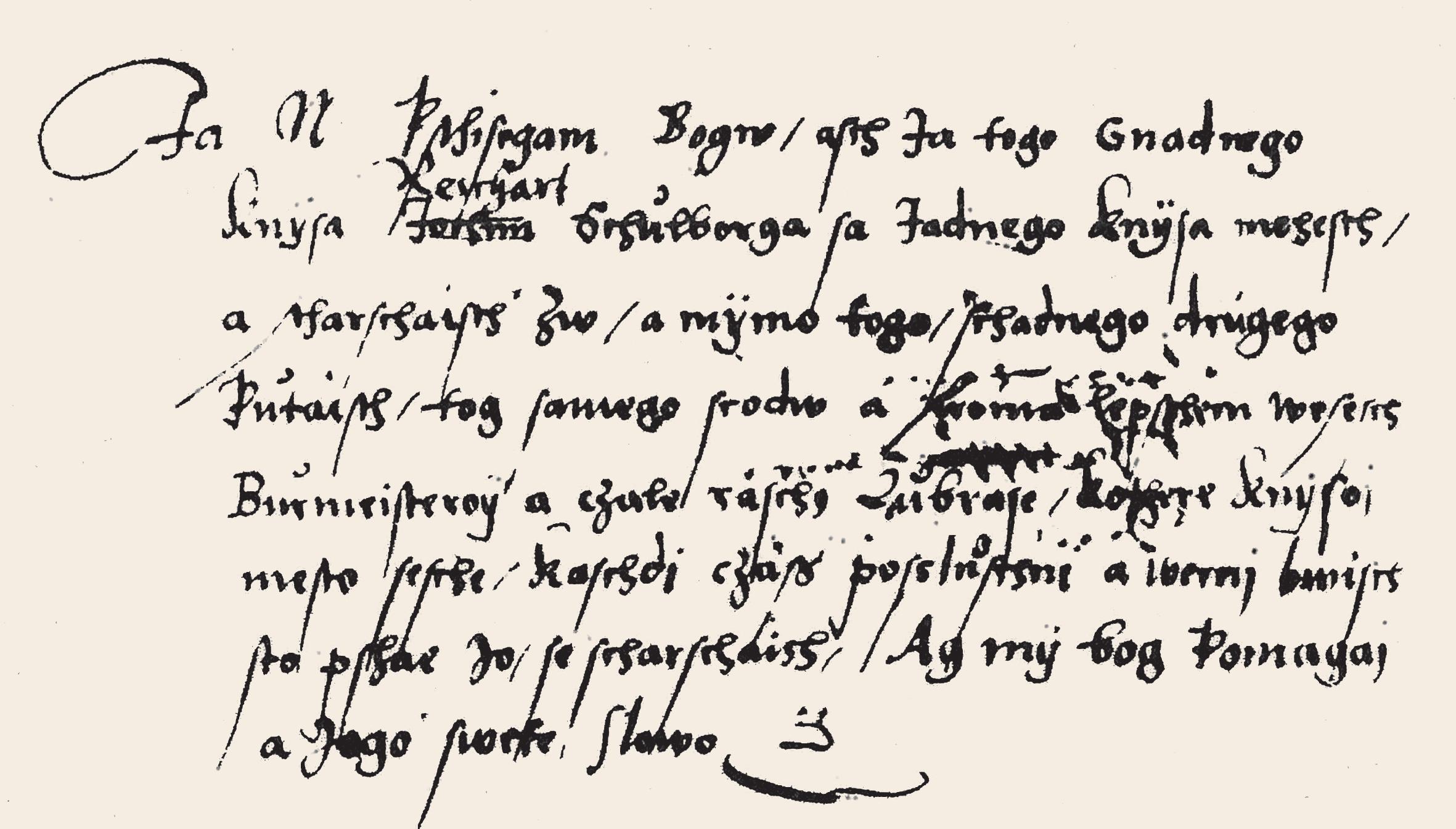 Eine handschriftlich-wendische Randnotiz aus Dominikanerkloster Luckau, um 1510. Serbski rukopisny zapisk na kšomje z Dominikanskego kloštra Łukow, wokoło 1510.
