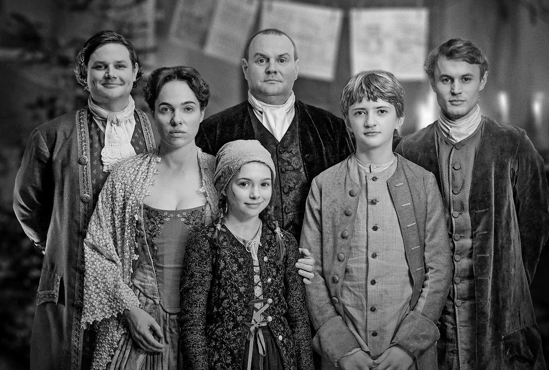 Gruppenbild mit Bach: Die Familie im Film »Bach – Ein Weihnachtswunder« –Friedemann, Anna Magdalena, Elisabeth, Johann Sebastian, Gottfried und Emanuel (von links nach rechts).