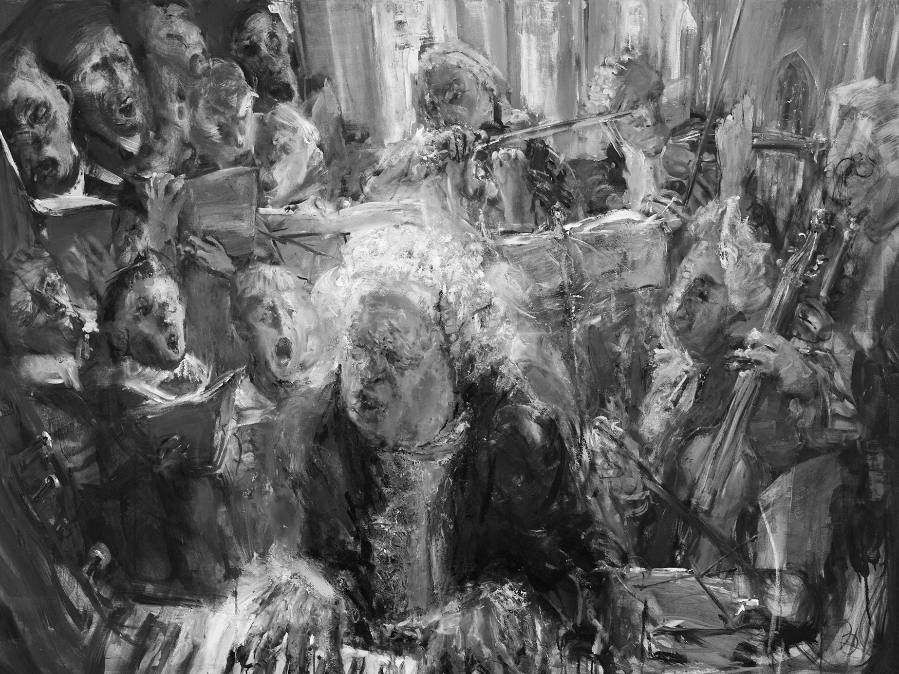 Drangvolle Enge auf der Empore: Johann Sebastian Bach auf Johannes Heisigs Gemälde »So kämpfet nun, ihr muntern Töne«.