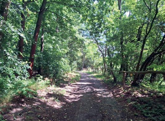 gestörte Pause einlegen. An der zweiten Abzweigung biegen wir rechts ab und verlassen den Wald Richtung Hauptstraße. Nach knapp fünf Minuten kreuzt der Weg erst einen Reitpfad und dann die wenig befahrene Hauptstraße.
