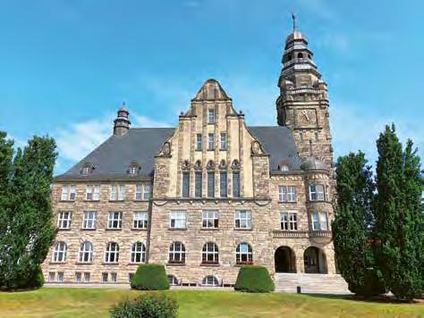 Begibt man sich nach Süden in Richtung Stadtkern, erreicht man den gewaltigen Bau des Rathauses. Stilistisch ist das im Juni 1914 eingeweihte Rathaus eine zeittypische Mischung aus mittelalterlichen und neobarocken Formen mit Elementen des Heimatschutzstils, also ein durchaus wilhelminischer Bau.