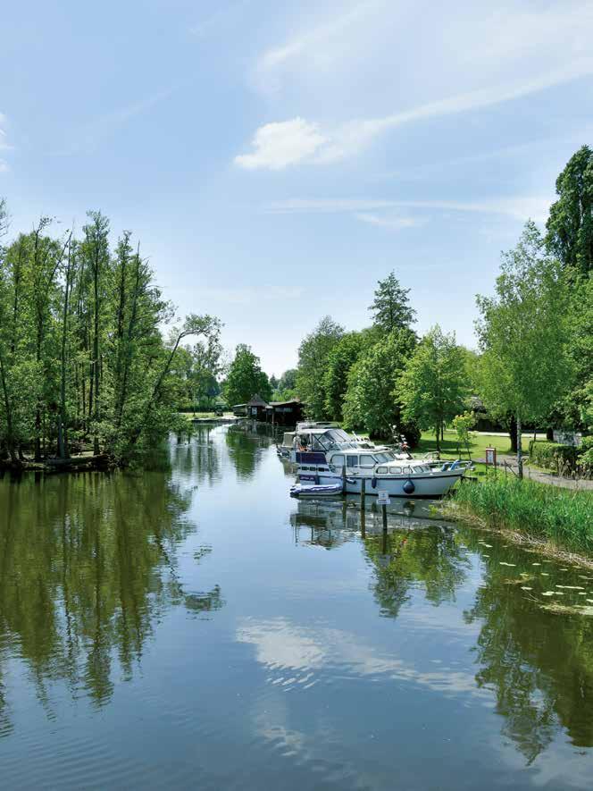 Ruderbooten befahren werden kann. Es ist ein sanfter Wassersport für jene Wasserwanderer, die die Stille und Weltabgeschiedenheit des oberen Havelverlaufs zu schätzen wissen. Südlich des Granziner Sees, wo die Havel sich zu einer schmalen, nicht zu befahrenden Bachrinne verengt, steht eine Lorenbahn zum Transport von Kanus zur Verfügung, die den Wassersportlern die Beförderung der Boote bis zum Pagelsee abnimmt. Hat sich die Havel durch all ihre ersten Seen geschlängelt, gesäumt von den tiefen Wäldern des Müritz-Nationalparks, einem eindrucksvollen Wandergebiet, weist das zunächst zarte Flüsschen ab dem Useriner See bereits eine Breite von zehn Metern auf. Mit der ersten Havelschleuse am Großen Labussee tritt die mittlerweile kräftige Havel aus dem Schutzkokon der zauberischen Wälder und Sümpfe ihres Ursprungs heraus und stellt sich der taghellen Realität: Ab hier sind nun Motorboote gestattet, und ab dem Woblitzsee ist die Havel mit mehreren Staustufen, Schleusen und Regulierungsanlagen zur Oberen Havel-Wasserstraße ausgebaut. Doch auch den meisten Motor- und Hausbootfahrern, die sich mit Kanus, Segelbooten und Flößen die Havel teilen, geht es hier vor allem um eins: um das Gefühl der Entschleunigung in einem der letzten Naturparadiese Deutschlands.