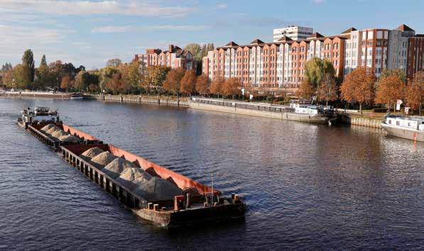Der Fluss als Transportweg: ein Frachtschiff auf der Havel bei Spandau