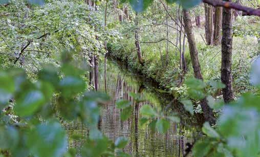 Die Havel unter Büschen und Bäumen im Müritz-Nationalpark bei Babke