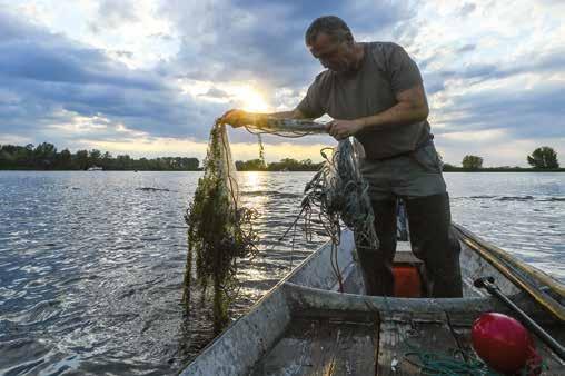 Beruf mit langer Tradition: Ein Fischer holt am Abend die Stellnetze ein.