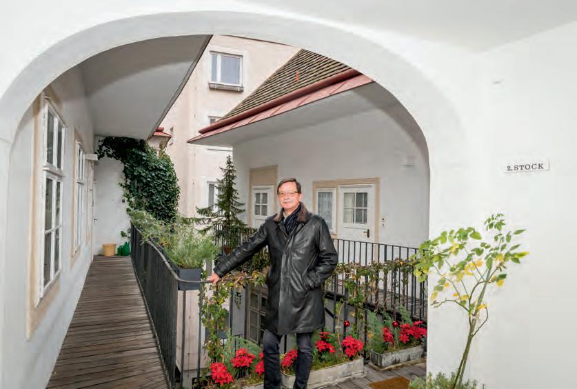Genau hier wohnen der Steuerberater Wolfgang Alber und eine Frau Jinny. Ins Grätzel gezogen sind sie 1989. „Das war eine Übersiedlung innerhalb des ersten Bezirks an meine Wunschtraum-Adresse. Die Blutgassse mit ihrem mittelalterlichen Flair hat mich schon als Jugendlicher fasziniert. Und nun leben wir hier im ältesten, nämlich seit dem 15. Jahrhundert, noch für Wohnungen genutzten Gebäude von Wien.“