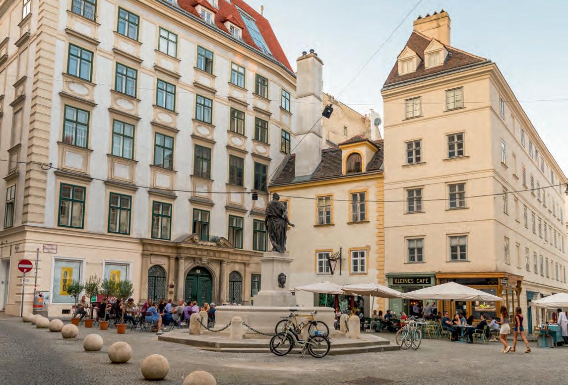 Schwedenplatz zwei ganze Häuserblöcke. Seit diese aufgrund irreparabler Kriegsschäden abgerissen und nicht wieder aufgebaut wurden, wird das gesamte Areal zwischen den beiden kleinen Plätzen heute oft als Schwedenplatz bezeichnet –obwohl es genau genommen die Adresse FranzJosefs-Kai trägt, was vermutlich sogar viele gut informierte Wiener überraschen wird.