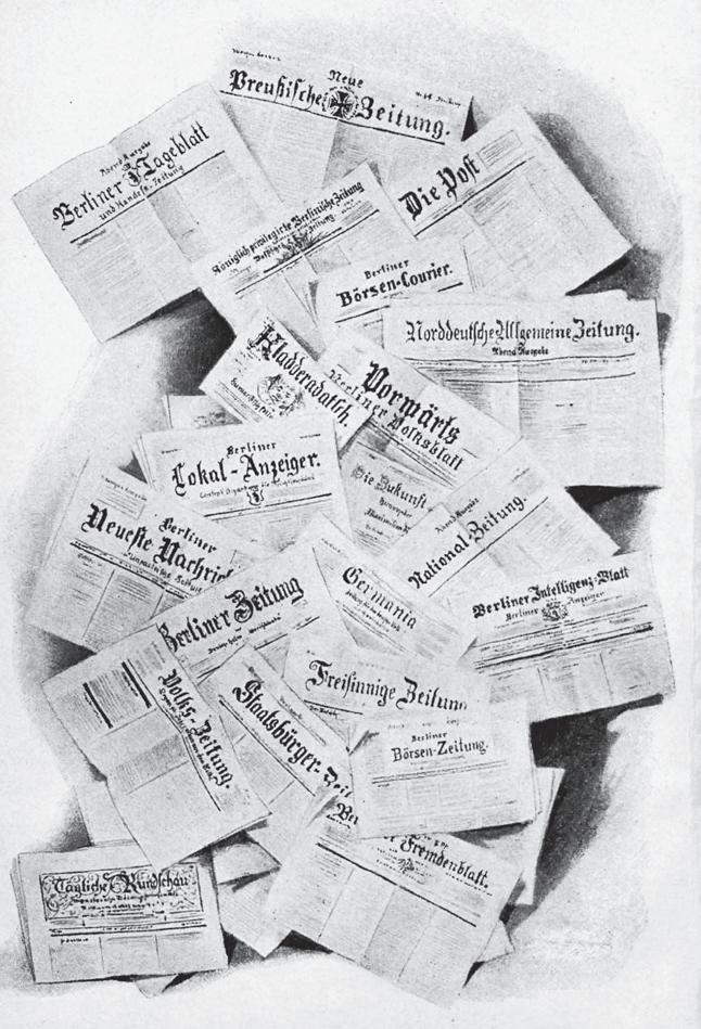 auch durch die Fortschritte der Technik unterstützt.«3 Maximilian Harden, seit 1892 Herausgeber und Hauptautor des Magazins Die Zukunft, bemerkt wenige Jahre später deutlich kritischer, die Presse sei »ein grosscapitalistisch betriebenes Gewerbe geworden […], ein Geldmachergeschäft, das dem Beruf fremde Leute leiten, dem sie, je nach ihrem Privatinteresse, den Weg weisen […].«4 Sahen Graf und Twain die Situation mit den Augen scharfer Beobachter von außen, waren Dahms und Harden seit vielen Jahren mit dem Aufschwung der Berliner Medien eng verbunden – sie alle aber waren sich über den Aufstieg der Presse einig. Dies war allerdings nur der sichtbarste Ausdruck der Entwicklung Berlins zu einer Medienmetropole.