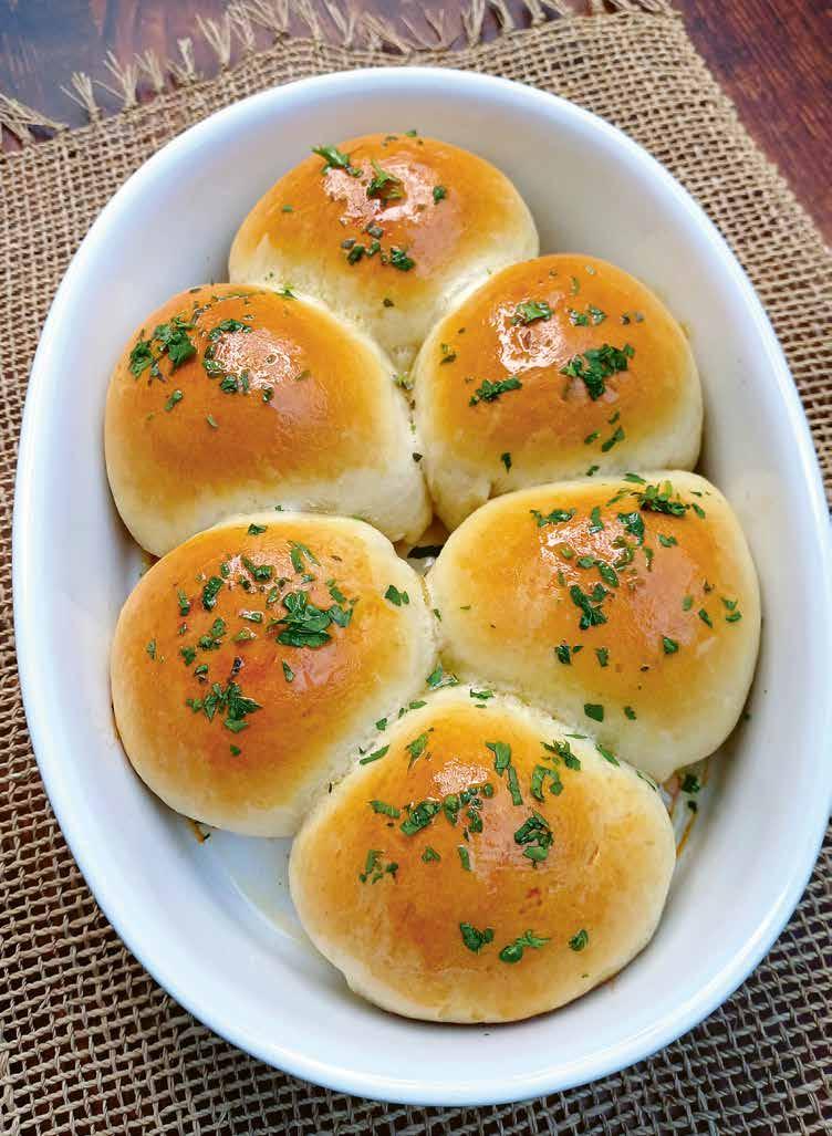 Außen knusprig, innen soft und würzig – dieses Brot mit extra viel Kruste hat Suchtpotenzial. Ich backe es gern als Vorspeise zu einer Suppe oder einem Salat, mit dem Ergebnis, dass man oft gar keinen Hauptgang mehr braucht, weil es so lecker ist, und niemand mehr etwas anderes essen will. Außerhalb der Bärlauch-Saison funktioniert das Brot natürlich auch mit anderen Kräutern.