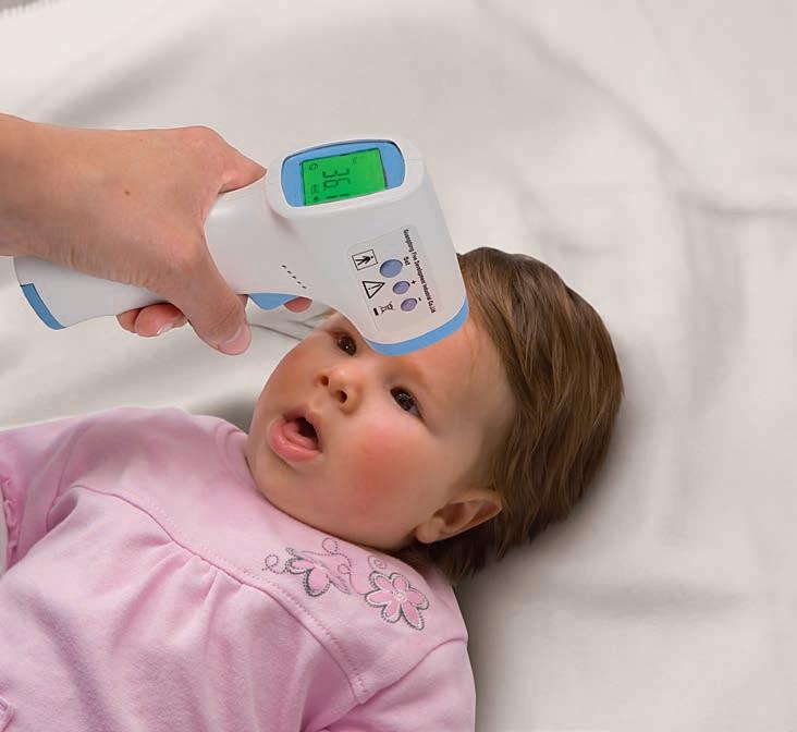 Parfait pour les jeunes enfants, pour mesurer la fièvre sur le front sans contact. Il est ainsi superflu de déranger ou d’inquiéter le bébé. Tenez simplement le thermomètre avec le capteur à une distance de 1 à 3 cm du milieu du front et pressez sur start. La prise de température est terminée après 1 seconde et signalée par un