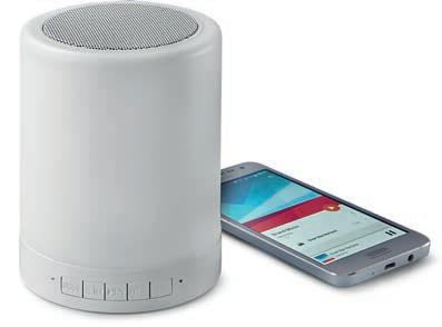 tung ist dieser Lautsprecher ideal für dein Schlafzimmer oder unterwegs. Durch die Touch-Bedienung wird eine komfortable, einfache Steuerung ermöglicht, während das kabellose Laden dein Smartphone stets einsatzbereit hält. Inkl. Freisprechfunktion für bequeme Telefonate. Robustes ABS-Gehäuse, LED-Beleuchtung, 10 Watt Speaker, 2000 mAh Akkubatterie. Masse: 17,2 x 7,6 x 21,4 cm.