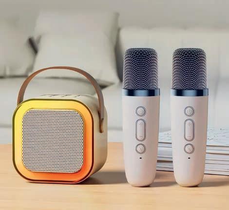 fekten für Musik und Magie im Kinderzimmer. Im Set dabei 2 Mikrofone und ein Speaker mit 5 Soundeffekten. Singt im Duett zu euren Lieblingsliedern, egal ob Geburtstag, Pyjamaparty oder einfach am Nachmittag mit Freunden. Lieferumfang: 1 Lautsprecher mit Tragegriff 9 x 7 x 9 cm, 2 Mikrofone je 13,5 x 3,7 cm, 1 USB-Ladekabel, 1 Bedienungsanleitung. Ab 3 Jahren.