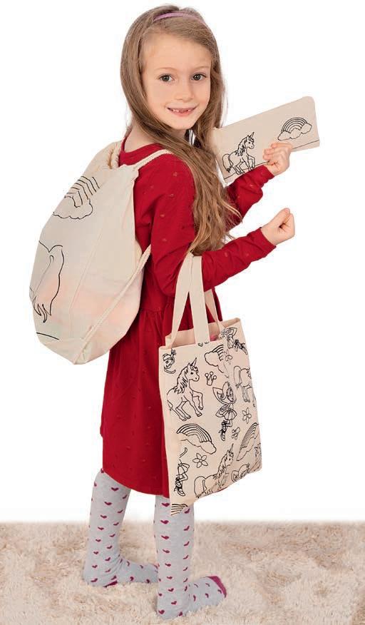 Modische Umhänge-Tasche 25 x 25 x 5,5 cm, mit coolem «Love» Sujet. Ein fach mit den mitgelieferten Permanent Markern bemalen und fertig ist dein Unikat. Ab 6 Jahren.