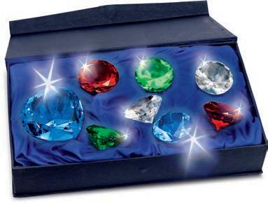 viele kreative Gestaltungsmöglichkei ten und einzigartige Geschenkideen durch interessante Prägeergebnisse. Ideal auf glatten Oberflächen wie Leder, Kunstleder, Stoff, Karton und Papier. Lieferumfang: Prägekolben 19 cm inkl. Auflageböckchen aus Metall, 5 farbige Folien, 1 Hologramm-Folie, 10 Aufsätze, Schneidematte 32 x 20 cm. Ab 14 Jah ren, unter Aufsicht eines Erwachsenen. Best.-Nr. 13793