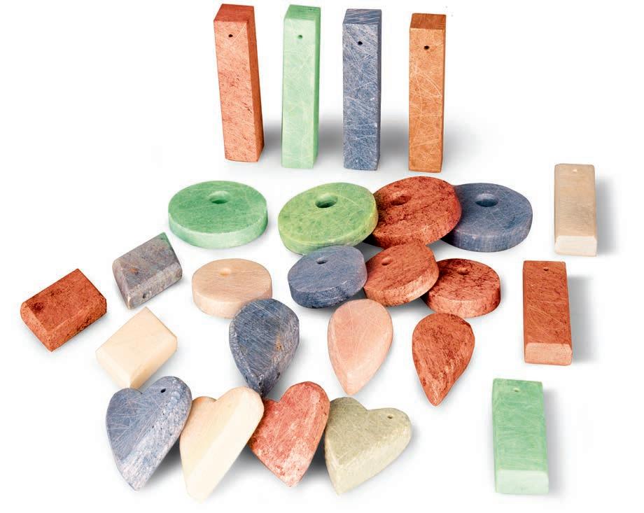 Specksteine sind weiche Steine, die sich einfach mit Feilen, Schleifen und Schnitzen bearbeiten lassen. Mit dieser grossen Box können die Kinder ihre ei genen Anhänger erarbeiten und das 3dimensionale Gestalten erlernen. Inhalt: