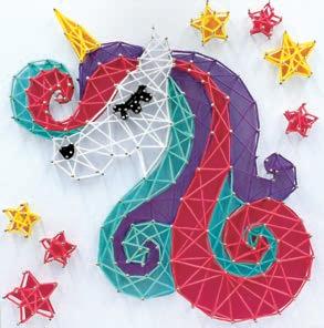verschiedenfarbiger Garne entstehen dann wunderschöne Fadenbilder. In halt: 3 Bildvorlagen Einhorn, Fuchs und Traumfänger, Nägel, verschiede ne Stickgarnfarben für das jeweilige Motiv, EVA-Schaumstoff Untergrund (Grösse: 19,5 x 19,5 cm) und doppel seitiges Klebeband. Ab 8 Jahren. Best.-Nr. 13905