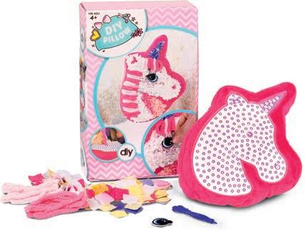 Mit diesen «pop in the plush» Bastelsets können ganz einfach niedliche PlüschTier-Kissen veredelt werden. Einfach die kleinen mitgelieferten Stoffstück chen mit dem Steckstift mittels einer Zahlenschablone, in das Kissen drü cken, Augen aufkleben und fertig ist dein Kissen. Für dekorative Kunstwer ke in deinem Kinderzimmer. Lieferum fang: 1 Plüschkissen mit Kunststoffein lage, Stoffstücke, 1 Steckstift zur Be festigung der Stoffstücke, Augen.