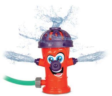 1 Borne à incendie gicleuse Borne à incendie gicleuse avec un visage joyeux, un jeu idéal pour les chaudes journées d'été. Il suffit de brancher le tuyau pour que l'eau jaillisse dans toutes les directions. Il sera impossible d'y échapper. Pour le plaisir de jouer et de se rafraîchir en même temps. Dimensions: env. 21 x 11 cm, s'adapte à tous les systèmes de tuyaux d'arrosage disponibles dans le commerce. No de comm. 14175 200 points BEA + CHF 12.80
