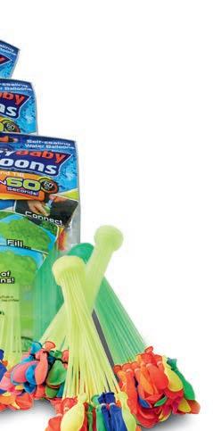 (sans points CHF 29.–) 5 Fronde à ballons d'eau Le rêve de tout enfant. Un rafraîchissement idéal pour les chaudes journées d’été. Il suffit de remplir les ballons d’eau, de les insérer dans la fronde et de „faire feu“. Une deuxième „bombe à eau“ peut être rechargée en même temps. La livraison inclut 3 systèmes de remplissage rapide avec 37 ballons d’eau chacun et 3 balles en plastique. Dimensions fronde env. 31 x 25 cm, à partir de 8 ans. No de comm. 12367 300 points BEA + CHF 18.50