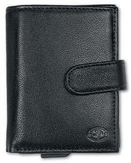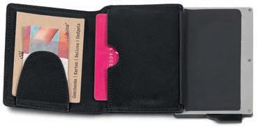 (sans points CHF 68.—) 3 Portefeuille avec protection des données RFID Taille compacte avec un espace étonnant d’Angelo Fortuna, en cuir véritable. Se glisse dans toutes les poches de pantalon. Le porte-cartes accueille 7 cartes de crédit. Celles-ci sont protégées contre le vol de données par le boîtier en aluminium et se retirent facilement grâce à la glissière. Avec pince à billets magnétique et
