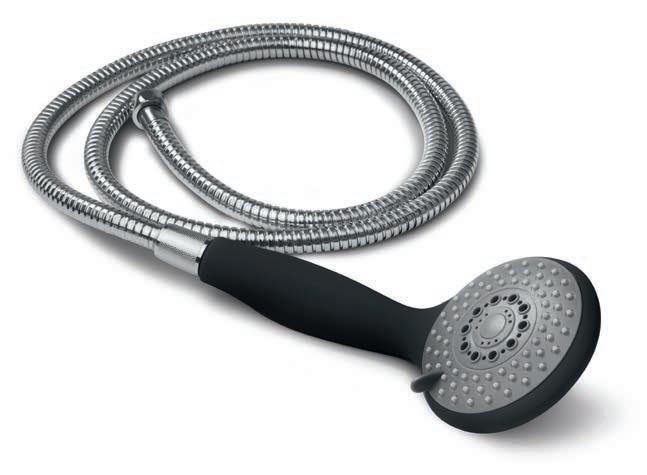 (sans points CHF 24.—) 6 Douche style confort Elégante douche moderne dotée de trois fonctions. Revêtue de caoutchouc antidérapant agréable à la peau, noyau ABS. Livraison avec tuyau en inox haute brillance de 1,5 m. No de comm. 11693 200 points BEA + CHF 29.–