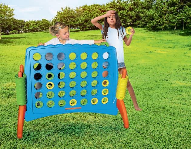 4 Jeu du moulin XXL, 27 pces Ce jeu du moulin de très belle finition en plastique convient à la fois pour l’intérieur et l’extérieur (résistant aux intempéries). La livraison comprend deux tapis de jeu en polaire (moulin et dames) de 158 x 158 cm, avec des œillets métalliques aux angles et des sardines de fixation. Un sac de transport en tissu pratique est inclus. 24 pièces l environ 10 cm. Dès 3 ans. No de comm. 13803 500 points BEA + CHF 44.— 5 Scoop Ball, 6 pces Un jeu d’adresse pour s’entraîner aux différentes techniques de lancer et d’attraper. Jeu d’attrape-balle composé de 4 raquettes et 2 balles pour un total de 4 joueurs. Favorise la coordination et la réactivité de manière ludique. Longueur de la raquette en plastique environ 36 cm. Dès 3 ans. No de comm. 13441 100 points BEA + CHF 15.80 6 Puissance quatre pour l’extérieur Le jeu classique des esprits vifs pour l’extérieur en grand format d’env. 106,5 x 48,5 x 88 cm. Le premier qui place quatre jetons en une rangée gagne la partie. Plastique de qualité pour l’intérieur et l’extérieur. Dès 3 ans. No de comm. 13555 500 points BEA + CHF 248.—