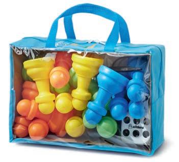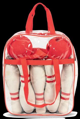 (sans points CHF 27.—) 3 Jeu de quilles souples, 13 pces Viser, prendre son élan et toucher, voilà qui amuse les jeunes et les moins jeunes. 10 grandes quilles 28 cm et 2 boules de bowling lourdes à trous l 10 cm en mousse rigide, 1 tapis de cible avec les positions numérotées pour les quilles et le calcul du score. Livré dans un sac de transport pratique. Parfait pour les écoles. Dès 3 ans. No de comm. 13631 300 points BEA + CHF 32.—