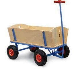Pour goûter en commun les plaisirs du jeu et les joies de la nature. Nos chariots à ridelles s’utilisent de mille et une façons. Ils sont toujours prêts à relever tous les défis, à la maison ou en route – châssis en tube d’acier laqué en couleur, structure en bois avec planches en copeaux à collage multiple, amovibles, larges pneus remplis d’air, sur roulements à billes, pour un confort supérieur.