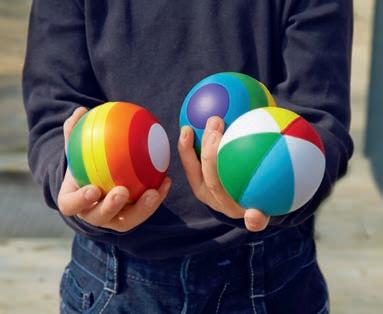 (sans points CHF 21.—) 5 Balles arc-en-ciel, 6 pces Avec leur l de 7 cm, elles sont parfaitement adaptées aux mains enfantines. De tendres balles maniables en matière synthétique, idéales aussi pour jongler. Dès 3 ans. No de comm. 10988 100 points BEA + CHF 12.80