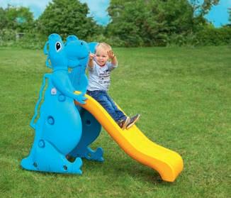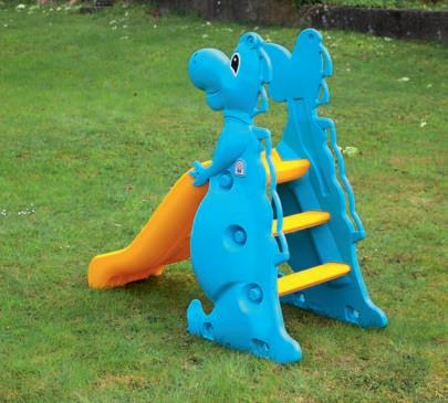 5 possibilités de se balancer. Une combinaison de jeux parfaite qui fera battre plus fort le cœur de chaque enfant. Comporte: double gondole à bascule, siège à bascule et balançoire à bascule. Construction stable en tube d'acier l 4,5 – 5 cm. Traitement raffiné par poudrage spécial vert foncé avec battitures et éléments contrastants jaunes. Livraison avec système d'ancrage au sol et instructions de montage. Dimensions totales: 295 x 155 x 195 cm, testé TÜV, dès env. 3 – 12 ans, jusqu'à 5 enfants d'un poids total de 190 kg. No de comm. 11407 1000 points BEA + CHF 198.— 5 Toboggan Dino Un jeu amusant et sans danger pour nos tout-petits. Assemblé en un tournemain. Transforme votre jardin en paradis du jeu. Construction extrastable à double paroi en matière synthétique. Dimensions env. 62 x 140,5 x 122 cm. No de comm. 11480 500 points BEA + CHF 78.—