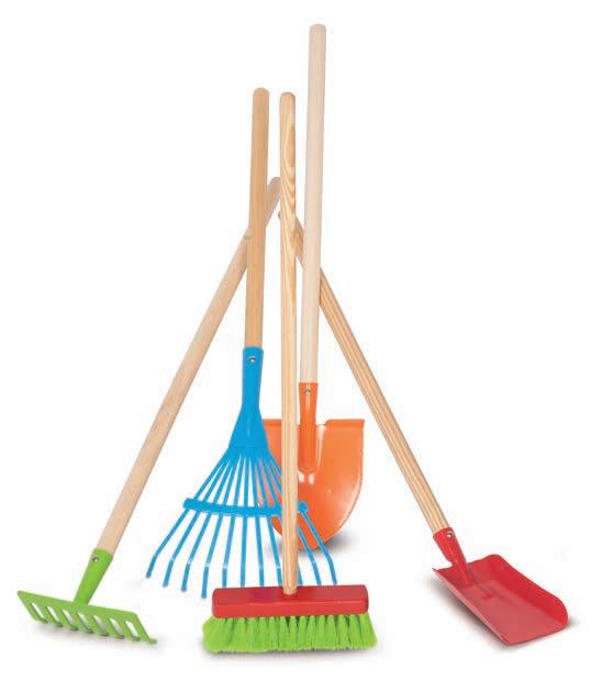 7 Outils de jardin pour enfants 4 pces Tout ce dont ont besoin les petits jardiniers comme équipement pour le jardin. De la pelle, râteau, binette et râreau pour feuilles jusqu’au balai de riz. Exactement modélisé comme l’original de papa. De poudre métallique avec poignées en bois. Hauteur env. 70cm. No de comm. 1218 300 points BEA + CHF 26.–