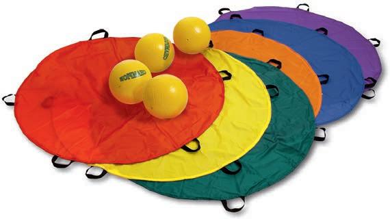 1 Drap de tournoi en toile de parachute, l 3,65 m D’innombrables possibilités de jeu pour entraîner le corps, la motricité et l’esprit d’équipe. Chaque pan possède un trou dans lequel la balle doit être «balancée» pour atteindre un certain nombre de points. Jeu idéal pour groupes de 5 – 10 enfants. Livré avec 2 balles légères originales. Dès 3ans. No de comm. 5599 500 points BEA + CHF 36.–