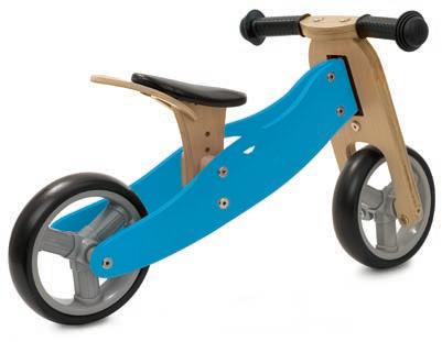 Draisiennes Ces draisiennes sont parfaites pour entraîner les sens de l’équilibre, de la coordination et des distances des jeunes enfants et les préparer à leur premier vélo. Construction en bois contreplaqué ou métal pour le modèle cross. 1 Draisienne-tricycle 2 en 1 Mon tout premier vélo - même les plus petits peuvent s’en servir. Ce tricycle, qui ne se renverse pas au premier essai „de course“, permet aux petits d’entraîner leur équilibre tout en s’amusant. De plus, il est transformable en un tournemain en draisienne standard, sans longue phase d’adaptation. Exécution stable en lamellé-collé, revêtement EVA sur jantes en matière synthétique. Siège rembourré réglable, hauteur du guidon env. 34 cm, dès 2 ans env. No de comm. 10619 300 points BEA + CHF 48.—