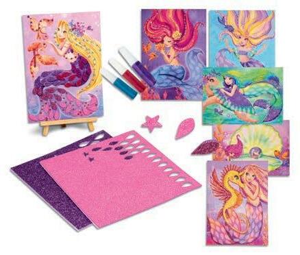viele kreative Gestaltungsmöglichkei ten und einzigartige Geschenkideen durch interessante Prägeergebnisse. Ideal auf glatten Oberflächen wie Leder, Kunstleder, Stoff, Karton und Papier. Lieferumfang: Prägekolben 19 cm inkl. Auflageböckchen aus Metall, 5 farbige Folien, 1 Hologramm-Folie, 10 Aufsätze, Schneidematte 32 x 20 cm. Ab 14 Jah ren, unter Aufsicht eines Erwachsenen. Best.-Nr. 13793