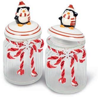 4 Vorratsglas Pinguin 2 Stk. Deckel mit Pinguin und rot-weisser Schnürung mit Schneeflocke um das Glas. Grösse ca. 7,7 x 7,8 x 15 cm. Best.-Nr. 14380