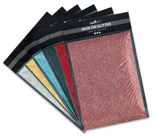 4 Aufbügelfolie Glitter A5 6 Stk. Einfach eigenes Motiv gestalten, auf der Rückseite aufzeichnen, mit einer Schere ausschneiden und aufbügeln. Fertig ist dein Kunstwerk. Ideal für TShirts, Stofftaschen, Stoffetuis uvam. Lieferung wie Abbildung, 6 Bögen 14,8 x 21 cm in verschiedenen Farben mit Glitter veredelt. Nach dem Aufbü geln ist deine Stoffkreation bei 40 Grad waschbar. Vor der ersten Reinigung 24 Stunden warten. Best.-Nr. 13196